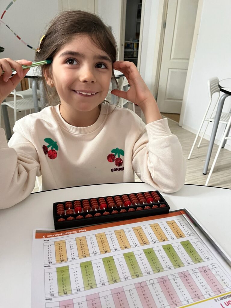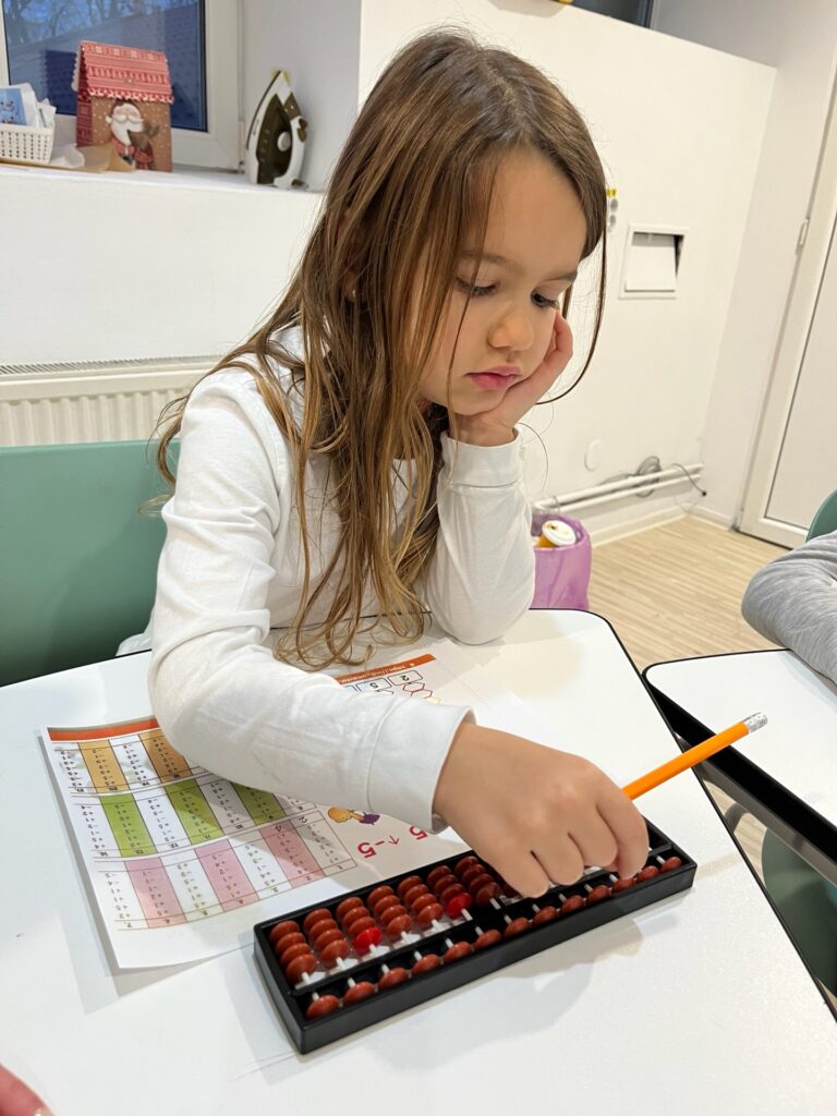 Prin bețișoarele colorate Cuisenaire și prin exerciții vizuale inspirate din abac, matematica prinde viață și devine concretă. Copiii nu doar află răspunsul corect, ci învață să explice cum au ajuns acolo dezvoltând logică, strategie și încredere în propriul mod de gândire.